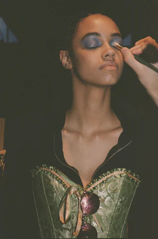 At lip level, for the most part, things were kept quiet with nude or bare pouts. One model, however, donned an intentionally lived-in orange-tainted lip. “Maryam had been drinking a turmeric tea, and it left a stain, so one person got a turmeric stained lip,” says Homidi of the brilliant-looking pout that was inspired by a drink that has been shown to carry anti-inflammatory and antioxidant attributes. Coupled with well-nourished skin—something model Drake Burnette, clad in a baseball tee and pencil skirt, says is a must in Manhattan ("I notice my skin is much more challenged when I’m in the city; I’m always trying to find the balance of keeping it clean but also not super dry,” says Burnette, a fan of Costa Brazil’s Face Oil)—it’s safe to say Nassir Zadeh served up a healthy dose of New York City living. And it’s never looked so good.