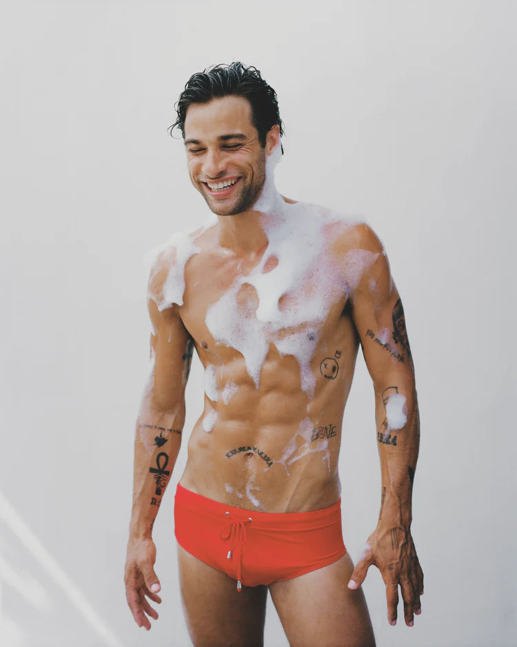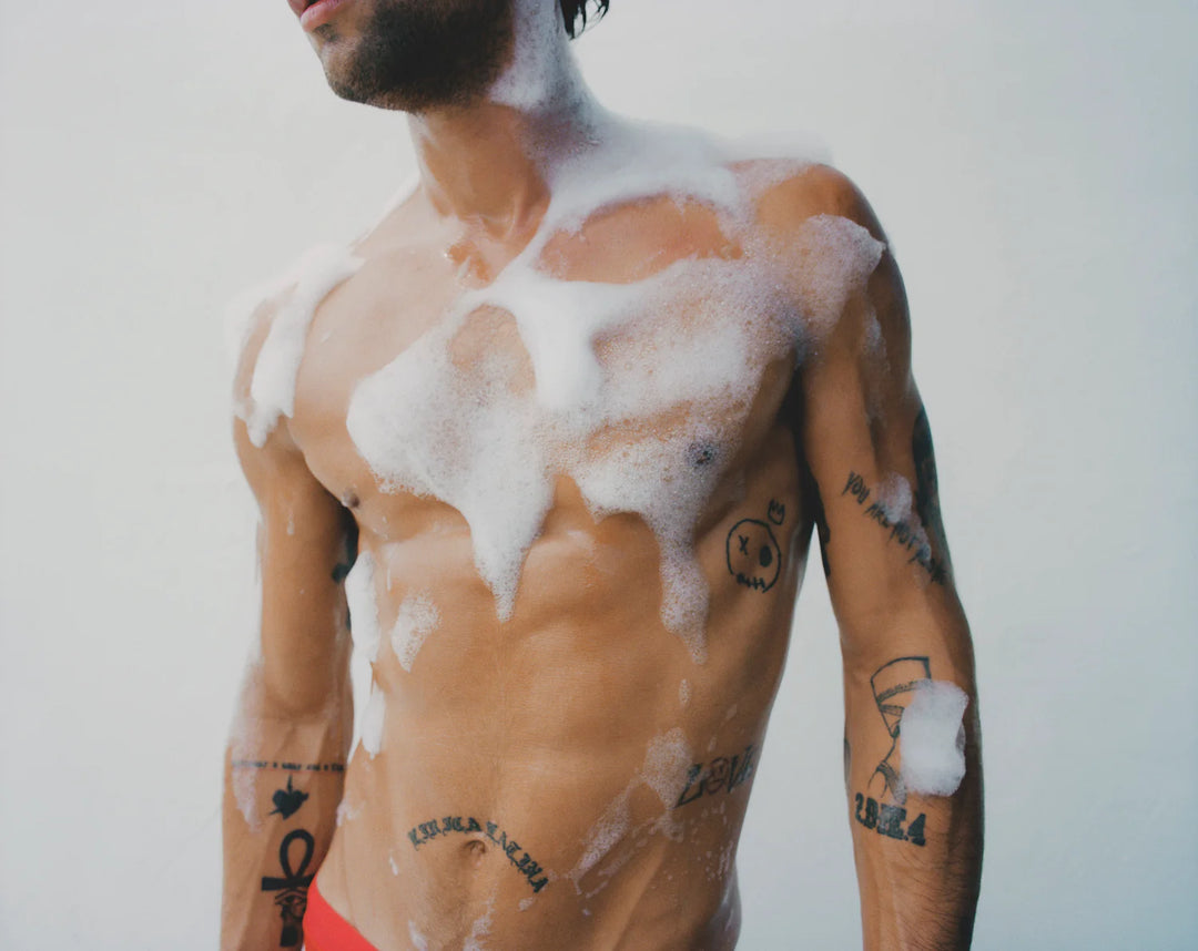 And while the clean, sulfate-free product was a pleasant treat for Morais, who was tasked to wash up and rinse down with it dozens of times while on set, he wasn’t at all surprised it was made by a Brazilian like Costa: “Brazil has a special connection with the body. There, people respect and love their bodies, and other bodies too.”