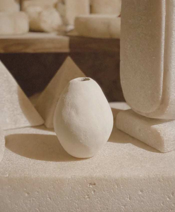 I am staying in a hotel owned by a friend from Cairo. I do a bit of meditation and stretching, go for walks in the mountain or palmgrove and dips in the pharaonic hot springs. I have also been experimenting with hand-built ceramics: simple, organic shapes made entirely by hand as I do not have access to a wheel. These decorative clay ceramics dry under the sun for days, as there are no kilns in the nearby village. Once hard, the ceramics are glazed with a purely natural paste made of salt and water before being fired, leaving this soft white coat that I love.